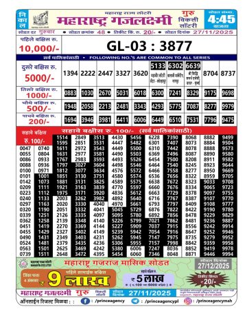 Maharashtra Gaj Laxmi Lottery Result 27/11/25