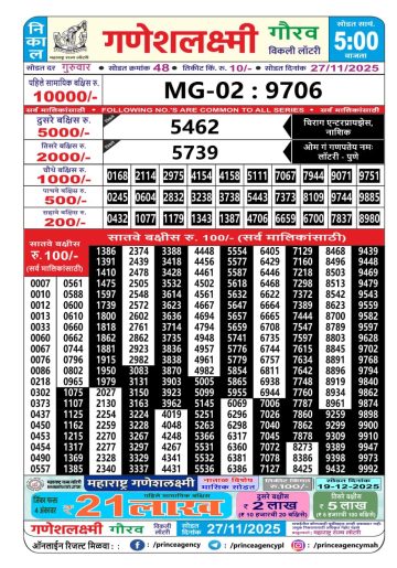 Maharashtra Ganesh Laxmi Lottery Result 27/11/25