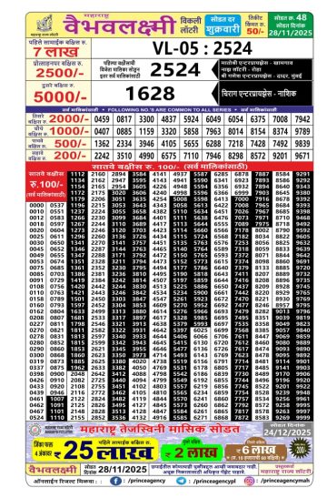 Maharashtra Vaibhav Laxmi Weekly Lottery Result 28/11/25