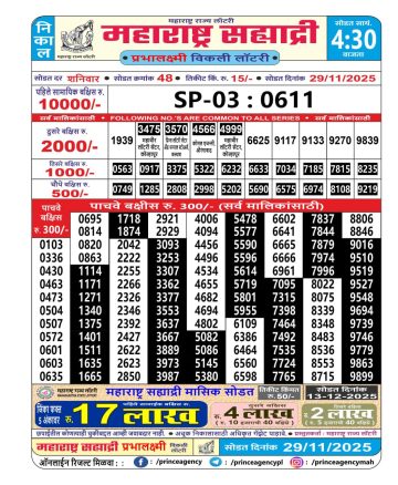 Maharashtra Sahyadri Weekly Lottery Result 29/11/25