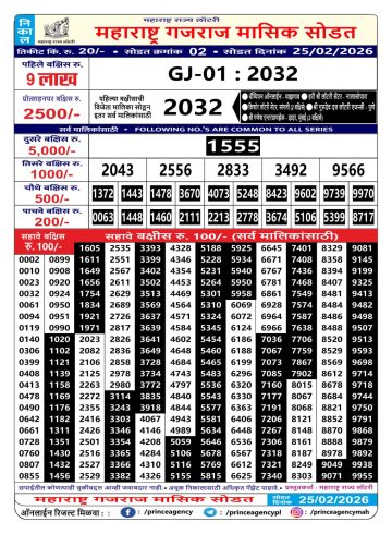 Maharashtra Gajraj Monthly Lottery Result 25/02/26