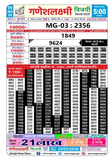 Maharashtra Ganesh Laxmi Lottery Result 25/02/26