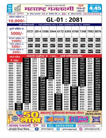 • Maharashtra Gajlaxmi Lottery Result 01/03/26