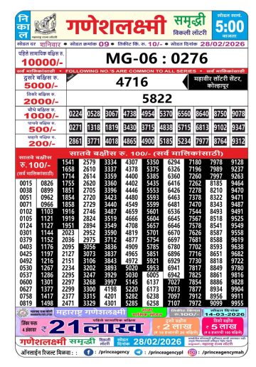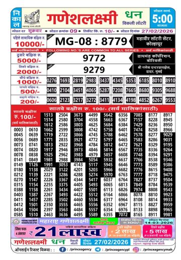 • Maharashtra Ganesh Laxmi Lottery Result 28/02/26