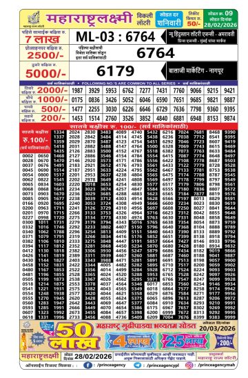 • Maharashtra Gajlaxmi Lottery Result 28/02/26