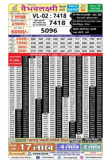 Maharashtra Vaibhav Laxmi Weekly Lottery Result 10/04/26