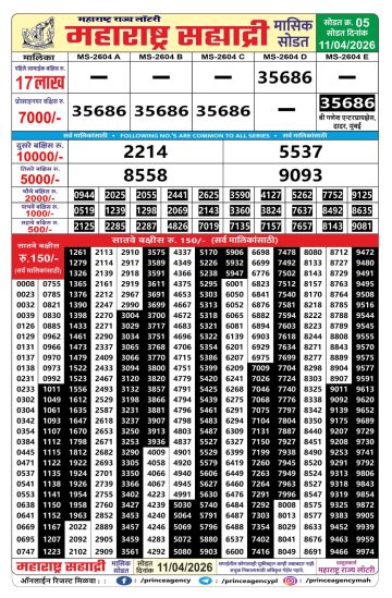 Maharashtra Sahyadri Monthly Lottery Result 11/04/26