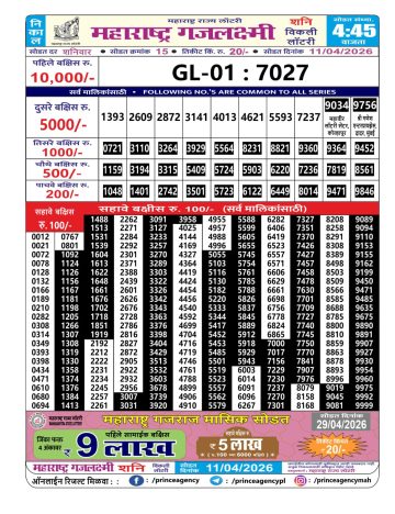 • Maharashtra Gajlaxmi Lottery Result 14/04/26