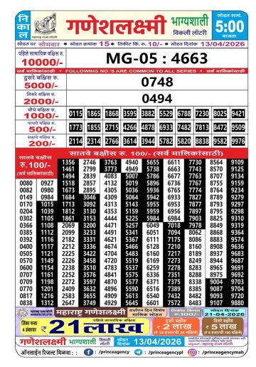 • Maharashtra Ganesh Laxmi Lottery Result 13/04/26