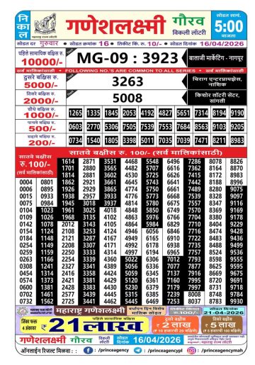 • Maharashtra Ganesh Laxmi Lottery Result 16/04/26