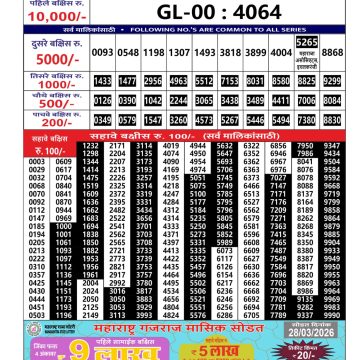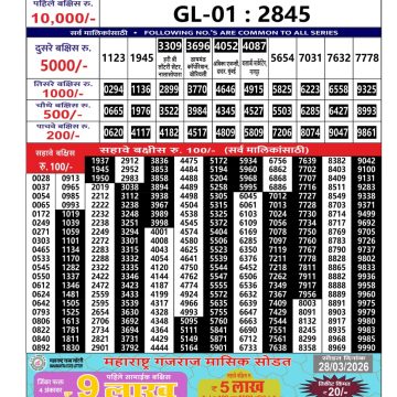 Maharashtra Gaj Laxmi Lottery Result 01/04/26 01/04/26 Leave a Comment on Maharashtra Gaj Laxmi Lottery Result 01/04/26 Share: XFacebookPinterestRedditVKDiggLinkedinMix Related Articles 0 190 Maharashtra Gajlaxmi Lottery Result 02/09/25 0 215 Maharashtra Gajlaxmi lottery result 22/3/25 0 150 Maharashtra Gaj Laxmi Lottery Result 19/06/32 0 433 Maharashtra Gaj Laxmi Lottery Result 26/03/26