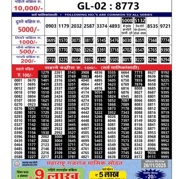 Maharashtra Gaj Laxmi Lottery Result 13/11/25 13/11/25 Leave a Comment on Maharashtra Gaj Laxmi Lottery Result 13/11/25 Share: XFacebookPinterestRedditVKDiggLinkedinMix Related Articles 0 66 Maharashtra Gajlaxmi Lottery Result 25/11/25 0 116 Maharashtra Gajlaxmi Lottery Result 16/5/25 0 58 Maharashtra Gaj laxmi lottery result 7/5/25 0 75 Maharashtra Gajlaxmi Lottery Result 19/08/25