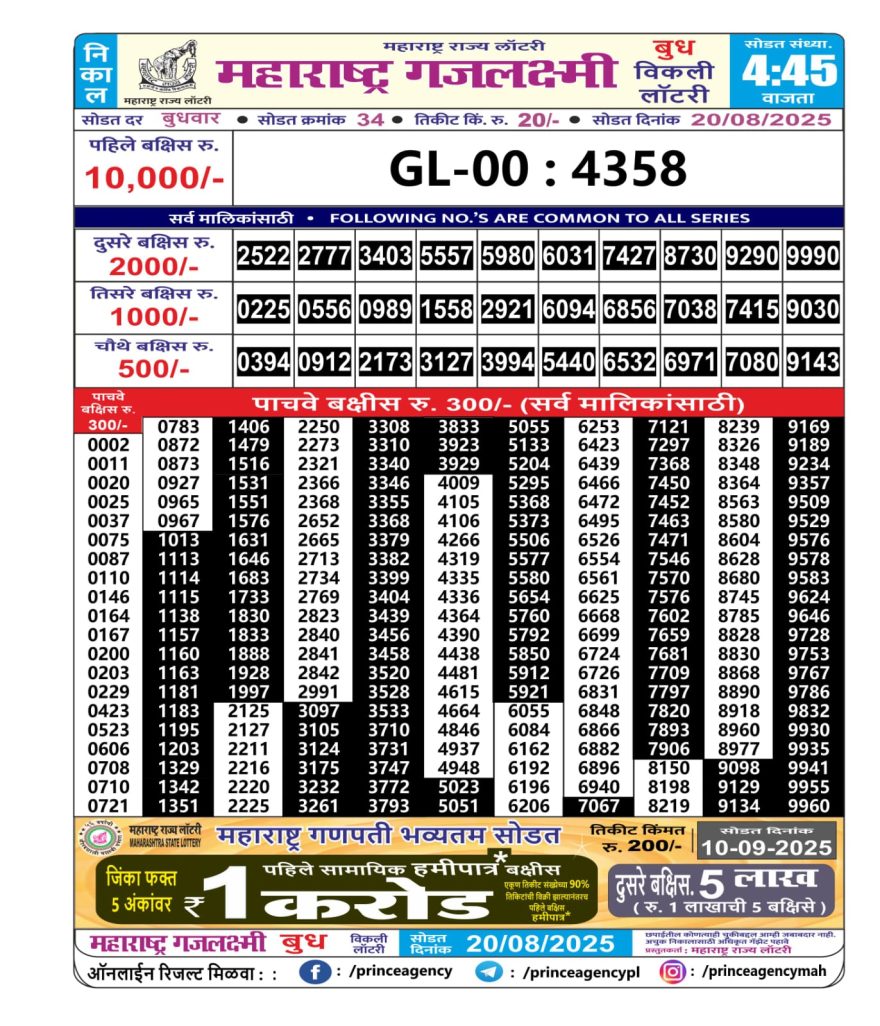 Maharashtra Gaj Laxmi Lottery Result 20/08/25 20/08/25 Leave a Comment on Maharashtra Gaj Laxmi Lottery Result 20/08/25 Share: XFacebookPinterestRedditVKDiggLinkedinMix Related Articles 0 49 Maharashtra Gaj Laxmi Lottery Result 15/5/25 0 58 Maharashtra Gajlaxmi Lottery Result 13/5/25 0 119 Maharashtra Gajlaxmi Lottery Result 20/09/25 0 50 Maharashtra Gajlaxmi Lottery Result 08/06/25