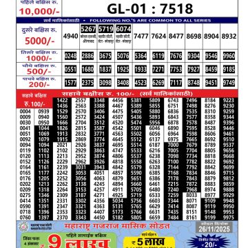 Maharashtra Gajlaxmi Lottery Result 01/12/25 01/12/25 Leave a Comment on Maharashtra Gajlaxmi Lottery Result 01/12/25 Share: XFacebookPinterestRedditVKDiggLinkedinMix Related Articles 0 137 Maharashtra Gajlaxmi Lottery Result 13/10/25 0 146 Maharashtra Gajlaxmi Lottery Result 04/10/25 0 86 Maharashtra Gajlaxmi Lottery Result 11/5/25 0 90 Maharashtra Gajlaxmi Lottery Result 11/11/25