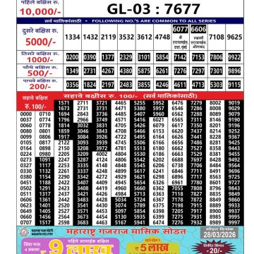 Maharashtra Gajlaxmi Lottery Result 05/04/26 05/04/26 Leave a Comment on Maharashtra Gajlaxmi Lottery Result 05/04/26 Share: XFacebookPinterestRedditVKDiggLinkedinMix Related Articles 0 223 Maharashtra Gajlaxmi Lottery Result 05/09/25 0 235 Maharashtra Gajlaxmi Lottery Result 14/12/25 0 200 Maharashtra Gajlaxmi Lottery Result 01/09/25 1 179 Maharashtra Gajlaxmi lottery result 1/3/25