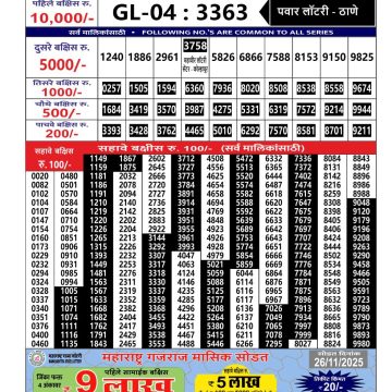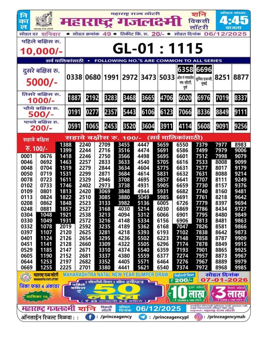 Maharashtra Gajlaxmi Lottery Result 06/12/25 06/12/25 Leave a Comment on Maharashtra Gajlaxmi Lottery Result 06/12/25 Share: XFacebookPinterestRedditVKDiggLinkedinMix Related Articles 0 85 Maharashtra Gajlaxmi Lottery Result 12/5/25 0 111 Maharashtra Gajlaxmi Lottery Result 23/11/25 0 74 Maharashtra Gajlaxmi Lottery Result 16/12/25 0 133 Maharashtra Gaj Laxmi Lottery Result 30/10/25