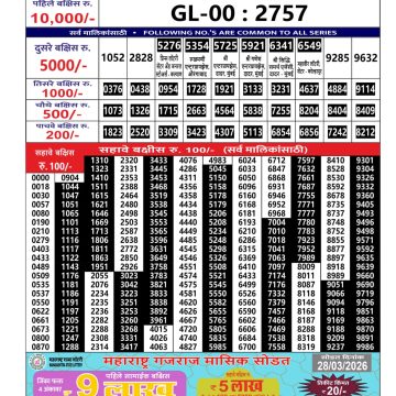 Maharashtra Gajlaxmi Lottery Result 07/04/26 07/04/26 Leave a Comment on Maharashtra Gajlaxmi Lottery Result 07/04/26 Share: XFacebookPinterestRedditVKDiggLinkedinMix Related Articles 0 157 Maharashtra Gajlaxmi Lottery Result 20/07/25 0 263 Maharashtra Gajlaxmi Lottery Result 04/10/25 0 143 Maharashtra Gaj Laxmi Lottery Result 18/06/25 0 395 Maharashtra Gajlaxmi Lottery Result 17/03/26