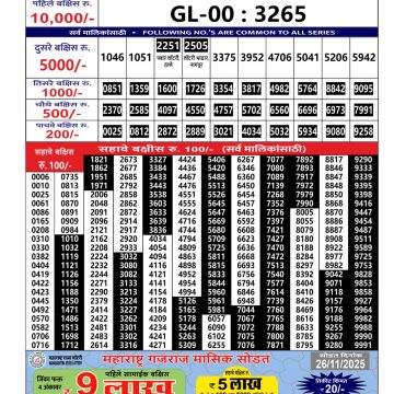 Maharashtra Gajlaxmi Lottery Result 10/10/25 10/10/25 Leave a Comment on Maharashtra Gajlaxmi Lottery Result 10/10/25 Share: XFacebookPinterestRedditVKDiggLinkedinMix Related Articles 0 129 Maharashtra Gajlaxmi Lottery Result 10/06/25 0 97 Maharashtra Gajlaxmi Lottery Result 12/08/25 0 161 Maharashtra Gajlaxmi Lottery Result 05/10/25 0 55 Maharashtra Gajlaxmi lottery result 4/4/25