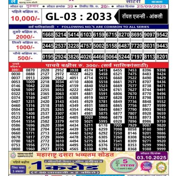 Maharashtra Gajlaxmi Lottery Result 11/10/25 11/10/25 Leave a Comment on Maharashtra Gajlaxmi Lottery Result 11/10/25 Share: XFacebookPinterestRedditVKDiggLinkedinMix Related Articles 0 31 Maharashtra Gajlaxmi Lottery Result 01/07/25 0 26 Maharashtra Gajlaxmi lottery result 9/3/25 0 36 Maharashtra Gajlaxmi Lottery Result 23/06/25 0 77 Maharashtra Gajlaxmi Lottery Result 29/08/25