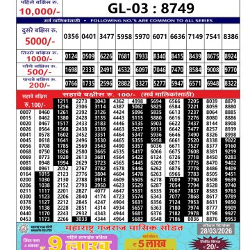 Maharashtra Gajlaxmi Lottery Result 27/03/26 27/03/26 Leave a Comment on Maharashtra Gajlaxmi Lottery Result 27/03/26 Share: XFacebookPinterestRedditVKDiggLinkedinMix Related Articles 0 290 Maharashtra Gajlaxmi Lottery Result 10/03/26 0 261 Maharashtra Gajlaxmi Lottery Result 18/10/25 0 292 Maharashtra Gajlaxmi Lottery Result 27/09/25 0 11 Maharashtra Gaj Laxmi Lottery Result 15/04/26