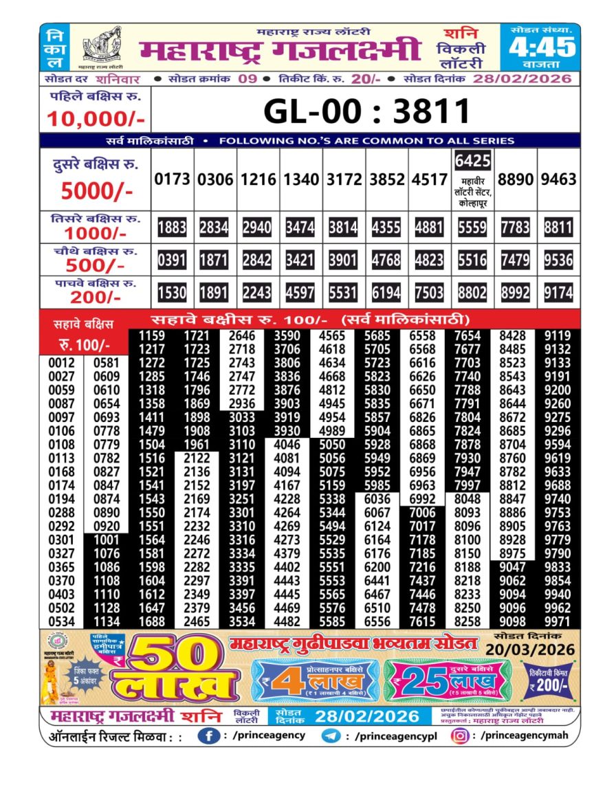 Maharashtra Gajlaxmi Lottery Result 28/02/26 28/02/26 Leave a Comment on Maharashtra Gajlaxmi Lottery Result 28/02/26 Share: XFacebookPinterestRedditVKDiggLinkedinMix Related Articles 0 204 Maharashtra Gaj Laxmi Lottery Result 11/09/25 0 154 Maharashtra Ganesh Laxmi Lottery Result 17/07/25 0 174 Maharashtra Gajlaxmi Lottery Result 01/09/25 0 250 Maharashtra Gaj Laxmi Lottery Result 19/02/26