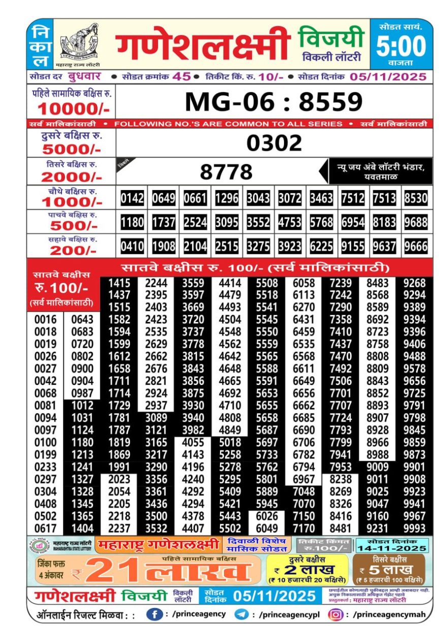 Maharashtra Ganesh Laxmi Lottery Result 05/11/25 05/11/25 Leave a Comment on Maharashtra Ganesh Laxmi Lottery Result 05/11/25 Share: XFacebookPinterestRedditVKDiggLinkedinMix Related Articles 0 86 Maharashtra Ganesh laxmi lottery result 9/4/25 0 95 Maharashtra Ganesh Laxmi Lottery Result 15/07/25 0 171 Maharashtra Ganesh Laxmi Lottery Result 09/09/25 0 101 Maharashtra Ganesh laxmi lottery result 21/4/25