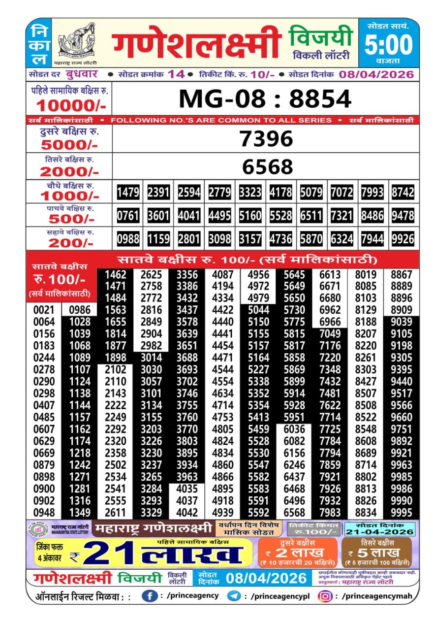 Maharashtra Ganesh Laxmi Lottery Result 08/04/26 08/04/26 Leave a Comment on Maharashtra Ganesh Laxmi Lottery Result 08/04/26 Share: XFacebookPinterestRedditVKDiggLinkedinMix Related Articles 0 194 Maharashtra Ganesh laxmi lottery result 10/3/25 0 250 Maharashtra Ganesh Laxmi Lottery Result 08/08/25 0 193 Maharashtra Ganesh laxmi lottery result 6/4/25 0 277 Maharashtra Ganesh Laxmi Lottery Result 20/5/25