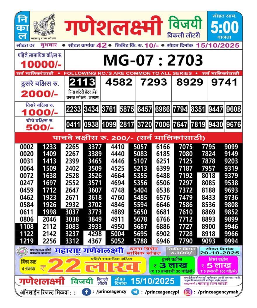Maharashtra Ganesh Laxmi Lottery Result 15/10/25 15/10/25 Leave a Comment on Maharashtra Ganesh Laxmi Lottery Result 15/10/25 Share: XFacebookPinterestRedditVKDiggLinkedinMix Related Articles 0 75 Maharashtra Ganesh Laxmi Lottery Result 23/5/25 0 37 Maharashtra Ganesh laxmi lottery result 31/3/25 0 52 Maharashtra Ganesh laxmi lottery result 3/5/25 0 54 Maharashtra Ganesh Laxmi Lottery Result 11/08/25