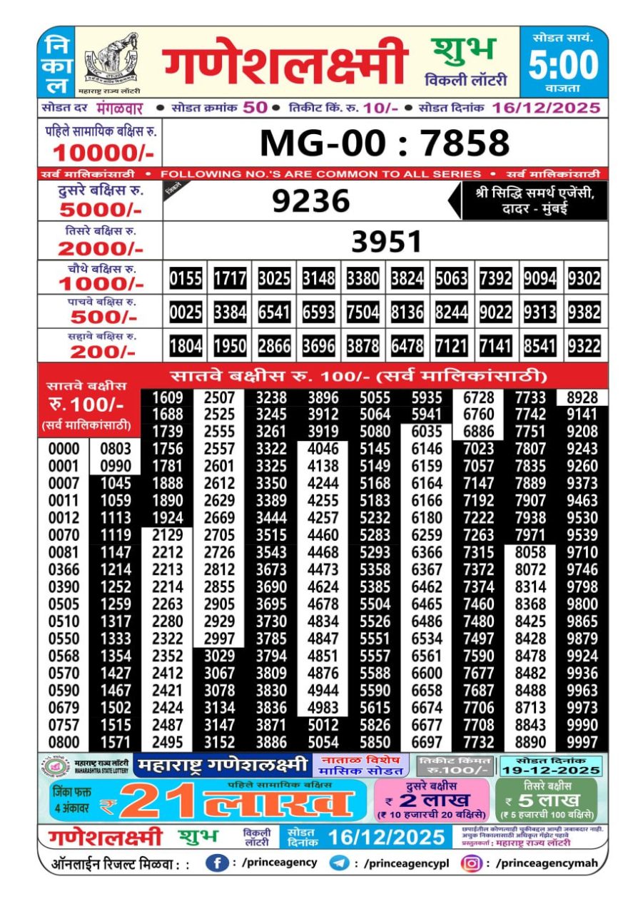 Maharashtra Ganesh Laxmi Lottery Result 16/12/25 16/12/25 Leave a Comment on Maharashtra Ganesh Laxmi Lottery Result 16/12/25 Share: XFacebookPinterestRedditVKDiggLinkedinMix Related Articles 0 172 Maharashtra Ganesh Laxmi Lottery Result 21/10/25 0 113 Maharashtra Ganesh Laxmi Lottery Result 06/12/25 0 84 Maharashtra Ganesh laxmi lottery result 8/3/25 0 113 Maharashtra Ganesh Laxmi Lottery Result 11/08/25