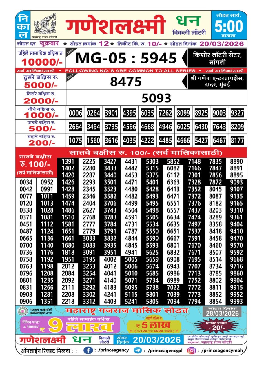 Maharashtra Ganesh Laxmi Lottery Result 20/03/26 20/03/26 Leave a Comment on Maharashtra Ganesh Laxmi Lottery Result 20/03/26 Share: XFacebookPinterestRedditVKDiggLinkedinMix Related Articles 0 201 Maharashtra Ganesh laxmi lottery result 4/5/25 0 228 Maharashtra Ganesh Laxmi Lottery Result 04/09/25 0 261 Maharashtra Ganesh Laxmi Lottery Result 29/01/26 0 184 Maharashtra Ganesh Laxmi Lottery Result 28/07/25