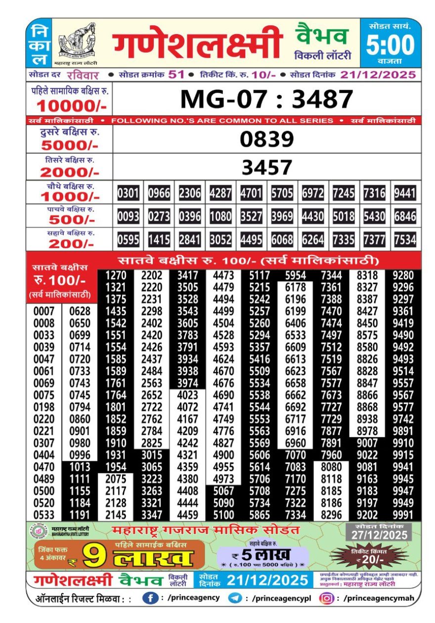 Maharashtra Ganesh Laxmi Lottery Result 21/12/25 21/12/25 Leave a Comment on Maharashtra Ganesh Laxmi Lottery Result 21/12/25 Share: XFacebookPinterestRedditVKDiggLinkedinMix Related Articles 0 85 Maharashtra Gajlaxmi lottery result 16/4/25 0 128 Maharashtra Ganesh Laxmi Lottery Result 19/11/25 0 106 Maharashtra Ganesh Laxmi Lottery Result 10/06/25 0 102 Maharashtra Ganesh laxmi lottery result 30/4/25
