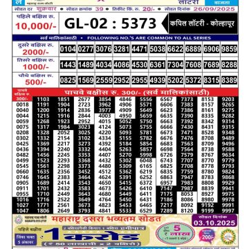 Maharashtra Ganesh Laxmi Lottery Result 25/5/25 25/05/25 Leave a Comment on Maharashtra Ganesh Laxmi Lottery Result 25/5/25 Share: XFacebookPinterestRedditVKDiggLinkedinMix Related Articles 0 106 Maharashtra Gajlaxmi Lottery Result 26/09/25 0 125 Maharashtra Gajlaxmi Lottery Result 29/09/25 0 51 Maharashtra Gaj Laxmi Lottery Result 14/08/25 0 71 Maharashtra Gajlaxmi Lottery Result 21/10/25