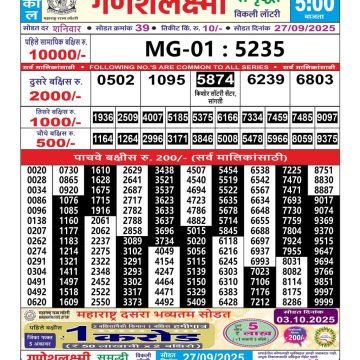 Maharashtra Ganesh Laxmi Lottery Result 27/05/25 27/05/25 Leave a Comment on Maharashtra Ganesh Laxmi Lottery Result 27/05/25 Share: XFacebookPinterestRedditVKDiggLinkedinMix Related Articles 0 118 Maharashtra Ganesh Laxmi Lottery Result 30/09/25 0 140 Maharashtra Ganesh Laxmi Lottery Result 27/09/25 0 37 Maharashtra Ganesh Laxmi Lottery Result 28/06/25 0 36 Maharashtra Ganesh Laxmi Lottery Result 11/06/25