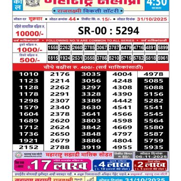 Maharashtra Mohini Lottery Result 02/11/25 02/11/25 Leave a Comment on Maharashtra Mohini Lottery Result 02/11/25 Share: XFacebookPinterestRedditVKDiggLinkedinMix Related Articles 0 41 Maharashtra Sahyadri Weekly Lottery Result 31/10/25 0 124 Maharashtra Sahyadri Weekly Lottery Result 11/09/25 0 113 Maharashtra Sahyadri Weekly Lottery Result 15/09/25 0 32 Maharashtra Sahyadri Weekly Lottery Result 07/08/25