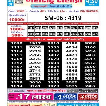 Maharashtra Mohini Lottery Result 07/09/25 07/09/25 Leave a Comment on Maharashtra Mohini Lottery Result 07/09/25 Share: XFacebookPinterestRedditVKDiggLinkedinMix Related Articles 0 16 Maharashtra Sahyadri Weekly Lottery Result 28/10/25 0 27 Maharashtra Sahyadri lottery result 1/4/25 0 38 Maharashtra Sahyadri Weekly Lottery Result 05/08/25 0 43 Maharashtra Mohini Lottery Result 10/08/25