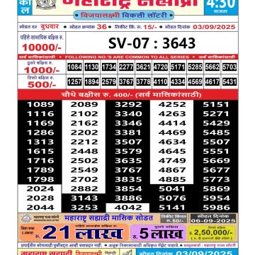 Maharashtra mohini Lottery Result 2/3/25 02/03/25 Leave a Comment on Maharashtra mohini Lottery Result 2/3/25 Share: XFacebookPinterestRedditVKDiggLinkedinMix Related Articles 0 60 Maharashtra Sahyadri Weekly Lottery Result 27/08/25 0 55 Maharashtra Sahyadri Weekly Lottery Result 03/09/25 0 55 Maharashtra Sahyadri Weekly Lottery Result 28/05/25 0 110 Maharashtra Sahyadri Weekly Lottery Result 26/09/25