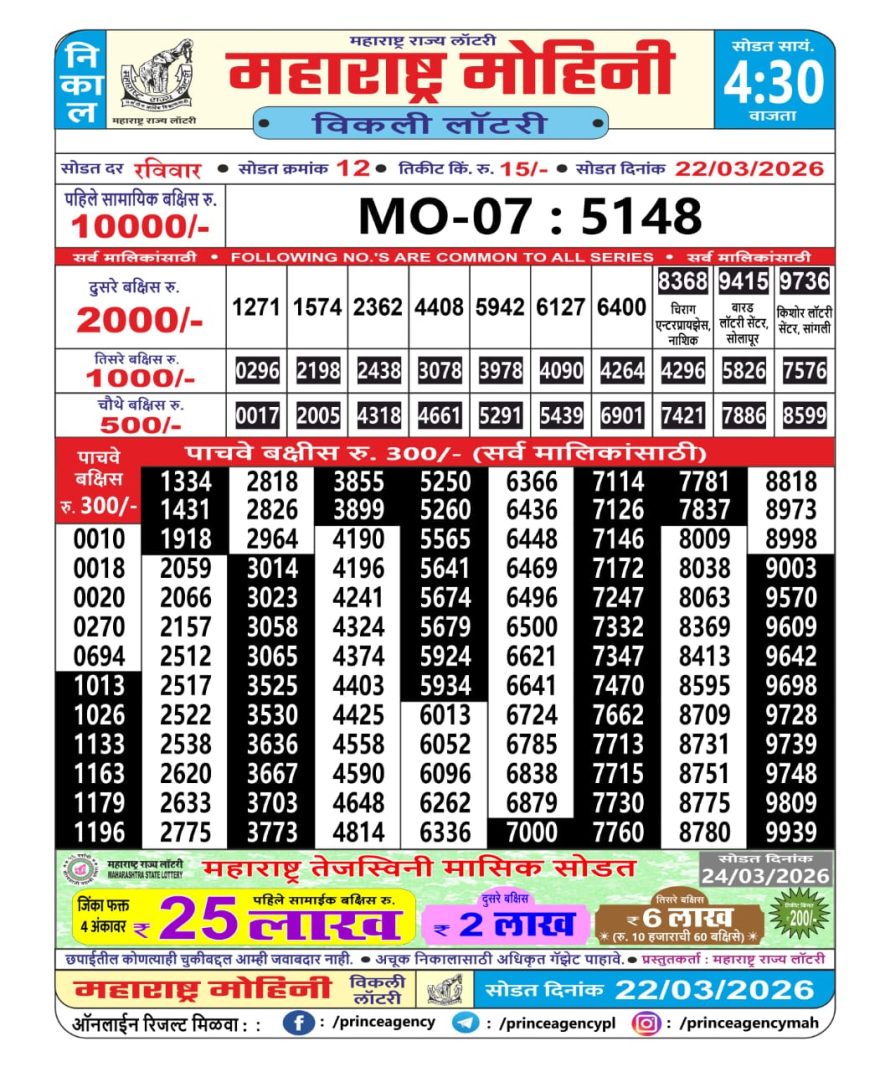 Maharashtra Mohini Lottery Result 22/03/26 22/03/26 Leave a Comment on Maharashtra Mohini Lottery Result 22/03/26 Share: XFacebookPinterestRedditVKDiggLinkedinMix Related Articles 0 276 Maharashtra Sahyadri Weekly Lottery Result 28/03/26 0 198 Maharashtra Mohini Lottery Result 04/01/26 0 169 Maharashtra Sahyadri Weekly Lottery Result 13/08/25 0 223 Maharashtra Sahyadri Weekly Lottery Result 17/11/25