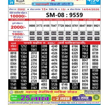 Maharashtra Sahyadri Weekly Lottery Result 02/04/26 02/04/26 Leave a Comment on Maharashtra Sahyadri Weekly Lottery Result 02/04/26 Share: XFacebookPinterestRedditVKDiggLinkedinMix Related Articles 0 217 Maharashtra Sahyadri Weekly Lottery Result 06/11/25 0 248 Maharashtra Sahyadri Weekly Lottery Result 17/09/25 0 241 Maharashtra Sahyadri weekly lottery result 30/4/25 0 228 Maharashtra Mohini Lottery Result 1/06/25