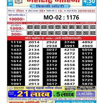 Maharashtra Sahyadri Weekly Lottery Result 03/09/25 03/09/25 Leave a Comment on Maharashtra Sahyadri Weekly Lottery Result 03/09/25 Share: XFacebookPinterestRedditVKDiggLinkedinMix Related Articles 0 36 Maharashtra Mohini Lottery Result 27/07/25 0 34 Maharashtra Sahyadri weekly lottery result 8/5/25 0 29 Maharashtra Gajlaxmi lottery result 1/4/25 0 6 Maharashtra Sahyadri Weekly Lottery Result 29/10/25
