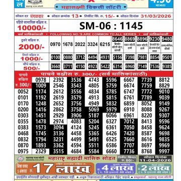 Maharashtra Sahyadri Weekly Lottery Result 10/04/26 10/04/26 Leave a Comment on Maharashtra Sahyadri Weekly Lottery Result 10/04/26 Share: XFacebookPinterestRedditVKDiggLinkedinMix Related Articles 0 168 Maharashtra Sahyadri Weekly Lottery Result 13/08/25 0 143 Maharashtra Sahyadri Weekly Lottery Result 07/08/25 0 196 Maharashtra Sahyadri Weekly Lottery Result 14/01/26 0 161 Maharashtra Sahyadri weekly lottery result 27/3/25