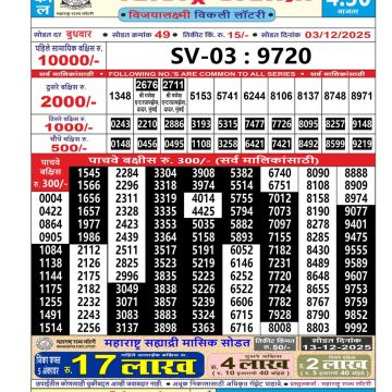Maharashtra Sahyadri Weekly Lottery Result 17/07/25 17/07/25 Leave a Comment on Maharashtra Sahyadri Weekly Lottery Result 17/07/25 Share: XFacebookPinterestRedditVKDiggLinkedinMix Related Articles 0 84 Maharashtra Sahyadri Weekly Lottery Result 16/06/25 0 75 Maharashtra Sahyadri Weekly Lottery Result 14/06/25 0 96 Maharashtra Sahyadri Weekly Lottery Result 03/12/25 0 46 Maharashtra Sahyadri Weekly Lottery Result 19/12/25