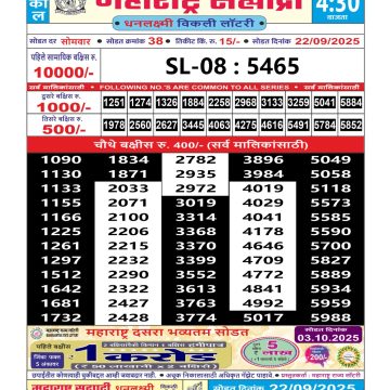 Maharashtra Sahyadri Weekly Lottery Result 19/07/25 19/07/25 Leave a Comment on Maharashtra Sahyadri Weekly Lottery Result 19/07/25 Share: XFacebookPinterestRedditVKDiggLinkedinMix Related Articles 0 32 Maharashtra Sahyadri Weekly Lottery Result 08/08/25 0 93 Maharashtra Sahyadri Weekly Lottery Result 22/09/25 0 27 Maharashtra Sahyadri Weekly Lottery Result 04/07/25 0 41 Maharashtra Sahyadri weekly lottery result 7/5/25