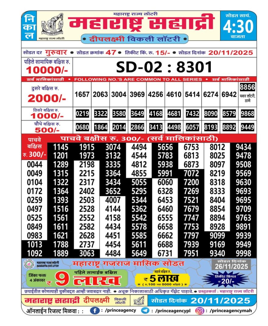 20/11/25  Leave a Comment on Maharashtra Sahyadri Weekly Lottery Result 20/11/25