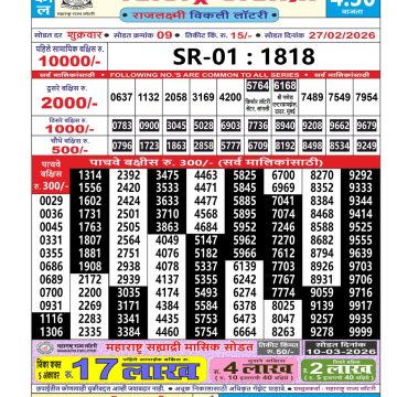Maharashtra Sahyadri Weekly Lottery Result 23/02/26 23/02/26 Leave a Comment on Maharashtra Sahyadri Weekly Lottery Result 23/02/26 Share: XFacebookPinterestRedditVKDiggLinkedinMix Related Articles 0 148 Maharashtra Mohini Lottery Result 28/12/25 0 160 Maharashtra Sahyadri Weekly Lottery Result 02/01/26 0 142 Maharashtra Mohini Lottery Result 11/01/26 0 16 Maharashtra Mohini Lottery Result 01/03/26