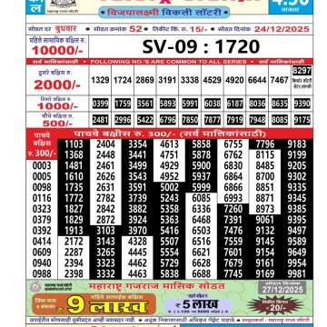 Maharashtra Sahyadri Weekly Lottery Result 25/12/25 25/12/25 Leave a Comment on Maharashtra Sahyadri Weekly Lottery Result 25/12/25 Share: XFacebookPinterestRedditVKDiggLinkedinMix Related Articles 0 125 Maharashtra Sahyadri Weekly Lottery Result 29/11/25 0 15 Maharashtra Sahyadri Weekly Lottery Result 24/12/25 0 88 Maharashtra Sahyadri Weekly Lottery Result 31/07/25 0 148 Maharashtra Sahyadri Weekly Lottery Result 07/07/25