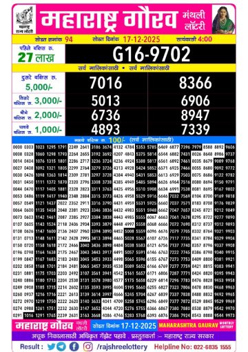 Maharashtra Gaj Laxmi Lottery Result 17/12/25