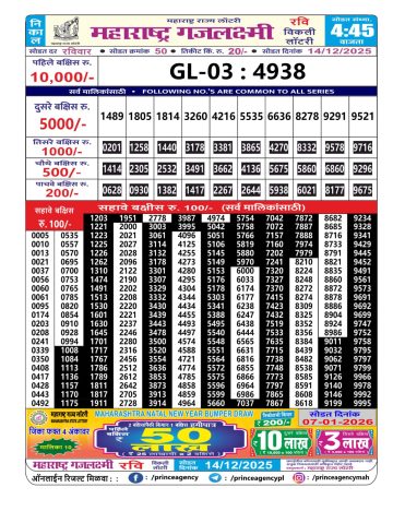 Maharashtra Gajlaxmi Lottery Result 14/12/25