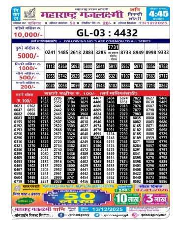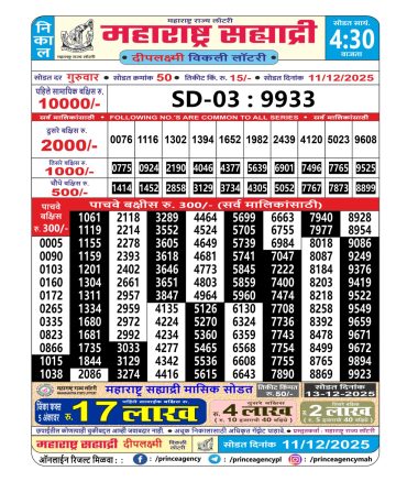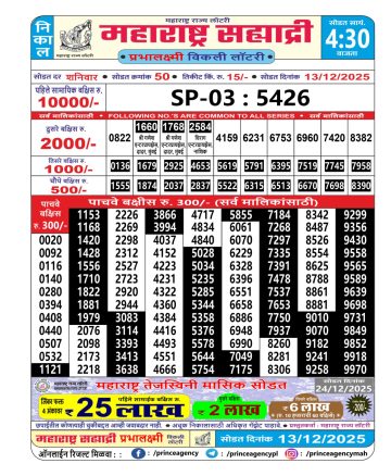 Maharashtra Sahyadri Monthly Draw Result 13/12/25 The Maharashtra Sahyadri Monthly Lottery Draw Result dated 13 December 2025…