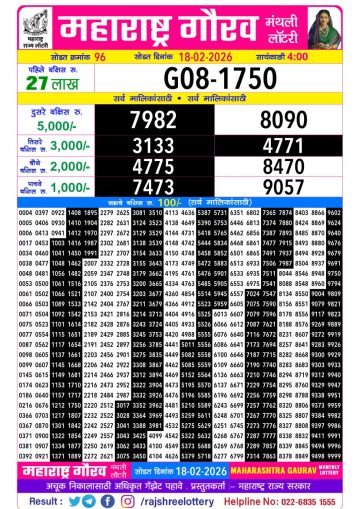 Maharashtra Lottery Result Today 4PM 4:15 4:30 4:45 5PM