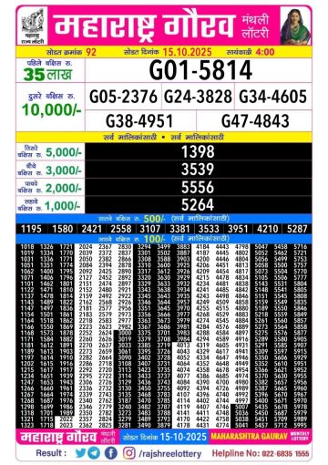 Maharashtra Gourav Monthly Lottery 15/10/25 Live